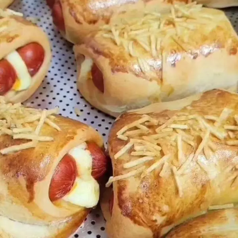 Uma Deliciosa Massa Assada Recheada com 2 Salsichas, Molho de Tomate, Catupiry, Finalizado com Batata Palha.