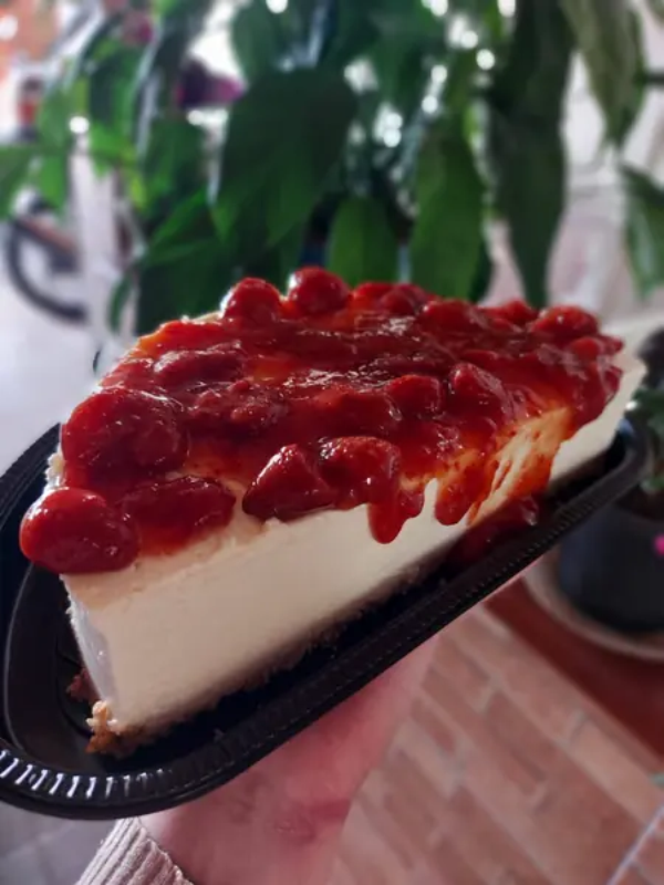 BASE DE BOLACINHA, CREME DE CREAM CHEESE, COBERTO COM GELÉIA DE MORANGO CASEIRA