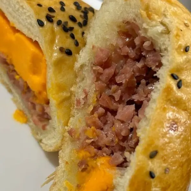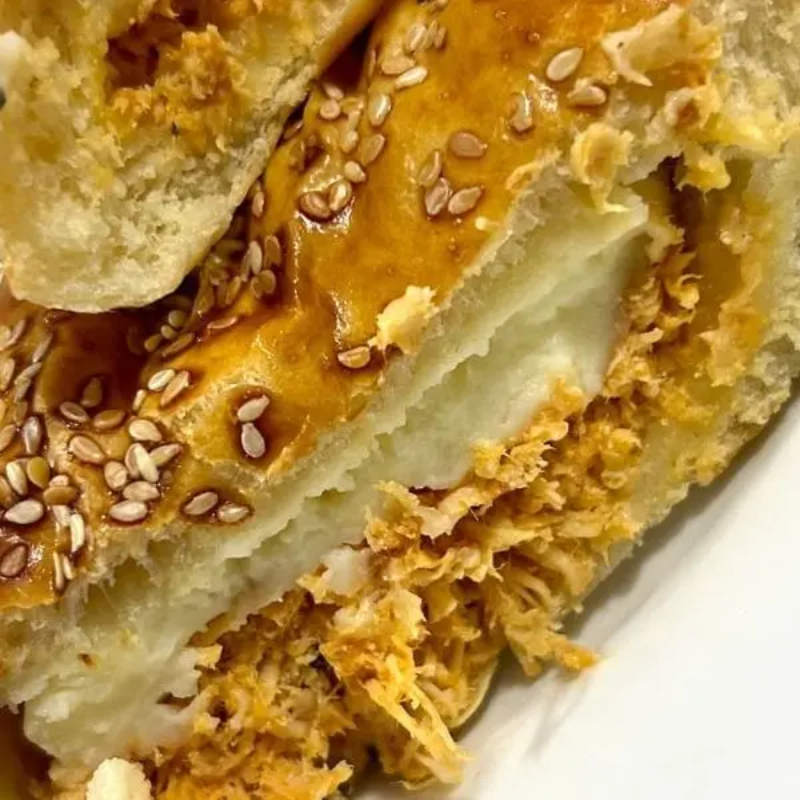 Uma Deliciosa Massa Assada Recheada com Calabresa, Cheddar, Finalizado com Gergelim.